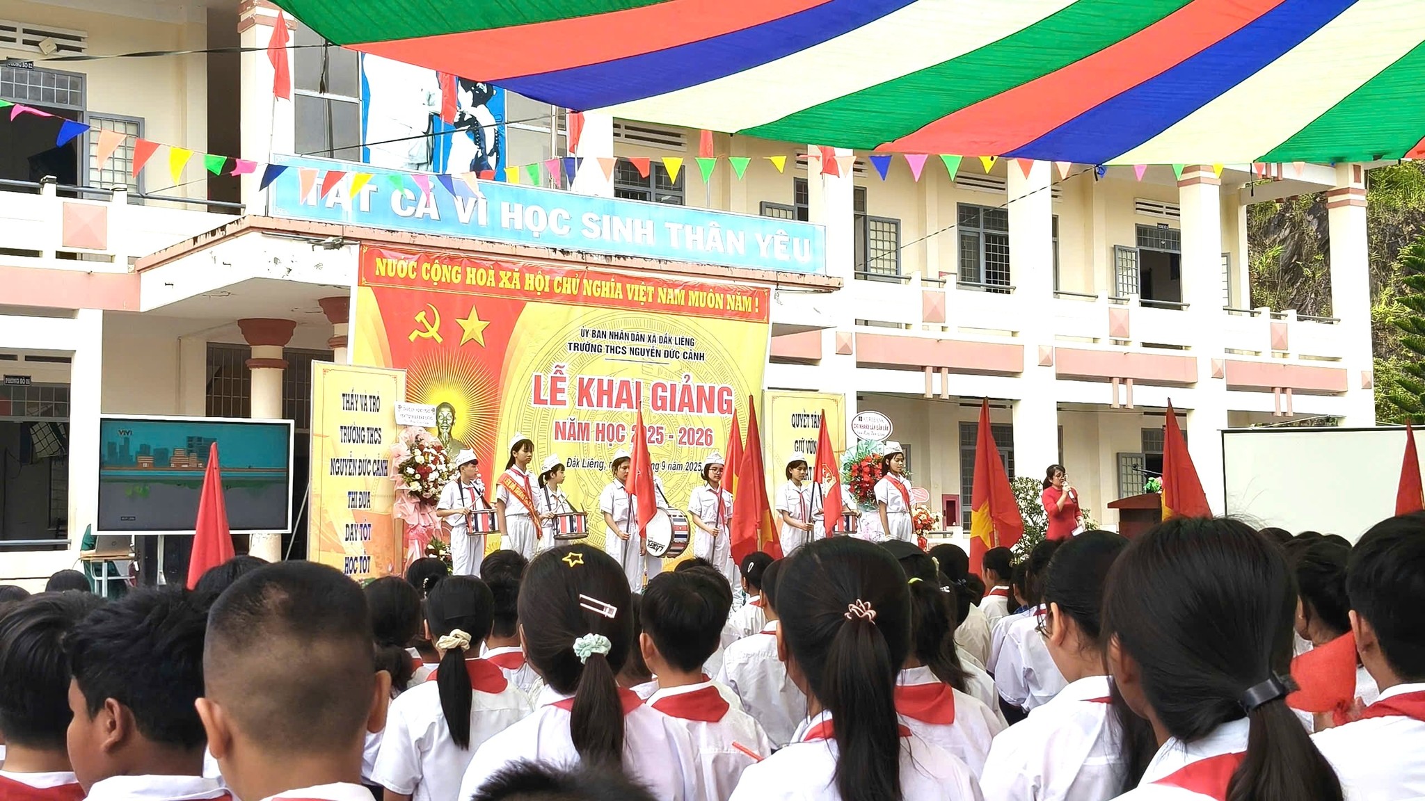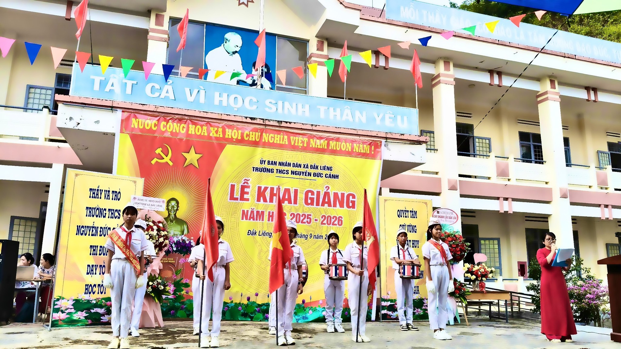 Trong không khí tưng bừng, phấn khởi của toàn Đảng, toàn dân, toàn quân ta chào mừng kỉ niệm 80 năm Quốc khánh nước Cộng hòa XHCN Việt Nam (2/9/1945 – 2/9/2025), kỉ niệm 80 năm thành lập Bộ Quốc gia Giáo dục – nay là Bộ Giáo dục và Đào tạo. Sáng ngày 5/9/2025, trường THCS Nguyễn Đức Cảnh tưng bừng tổ chức lễ khai giảng năm học 2025-2026
